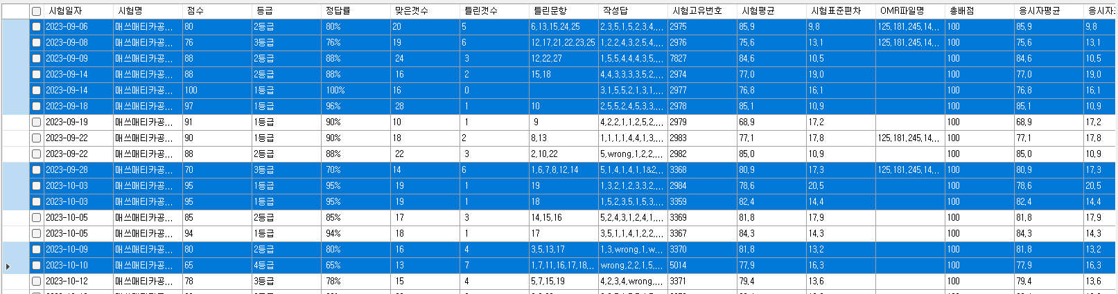 - 직접 마우스로 체크하거나, 표의 데이터를 '선택'한 뒤, 마우스 우클릭 후, '선택한 정보 체크하기' 옵션을 통해 체크합니다.