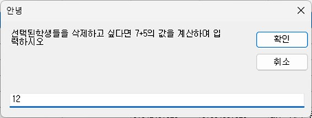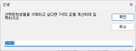 - 에듀허브에서는 학생 삭제와 같은 중요한 작업을 할 때는 아래와 같은 메세지 창이 열리게 됩니다.