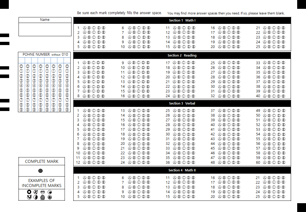 - SSAT OMR 양식