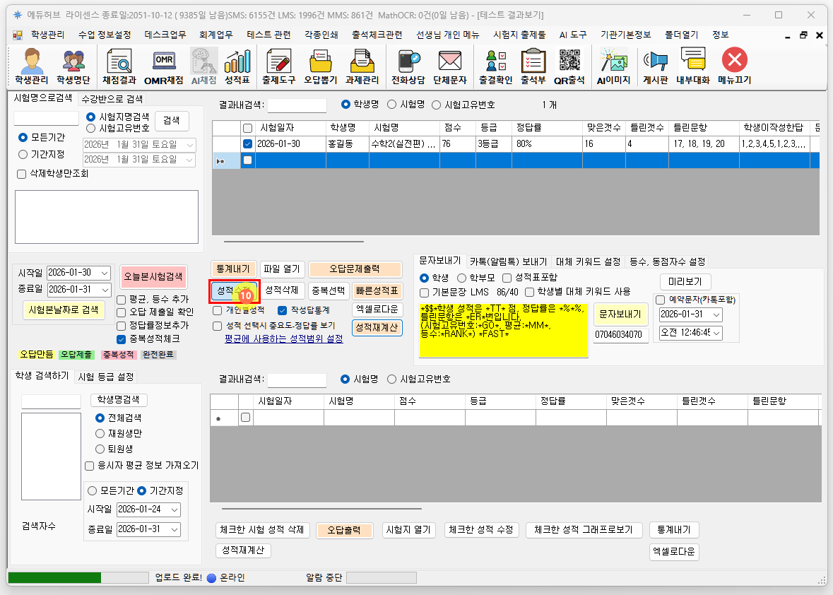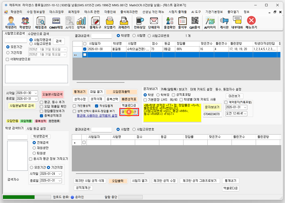 성적 재계산 버튼을 눌러 성적을 다시 계산합니다.