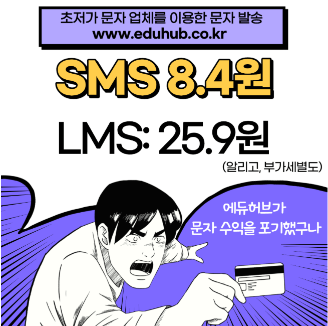 에듀허브는 알리고 보다 문자를 싸게 제공할수 없어서, 과감히 문자 판매 수익을 포기하기로 했습니다!